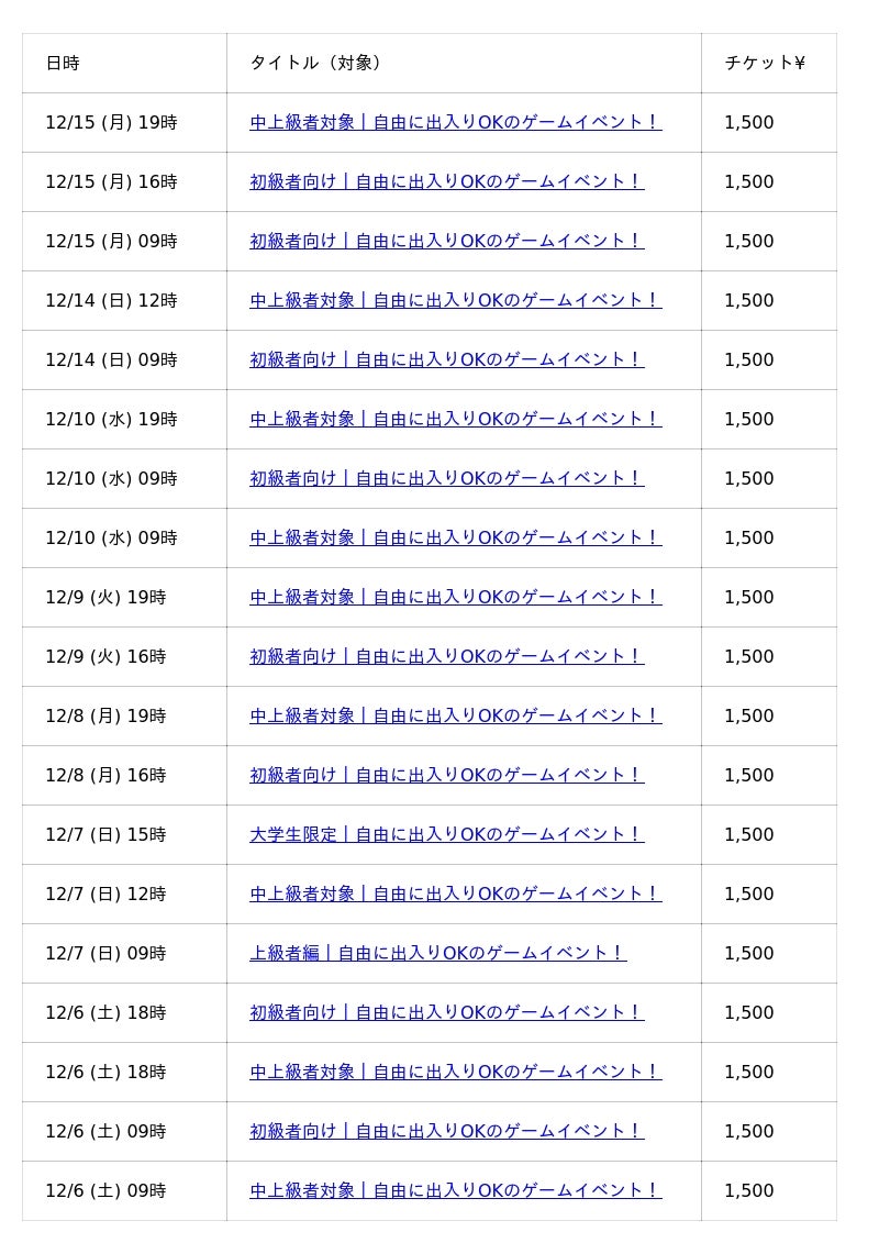 開催日前日16:00時点で参加者が0名の場合は中止となります