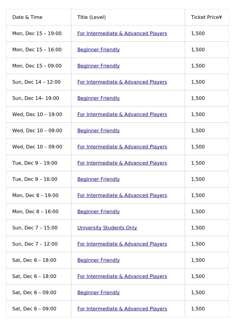 イベント検索サイト「Peatix」またはテニスイベント検索「テニスベア」からからご確認・お申込みいただけます。