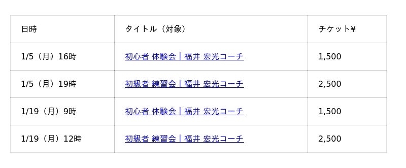 今回は、まったく初めての方向けの「体験会」と、ルールや動きにまだ不安のある方向けの「初級練習会」の2プログラムを開催します。