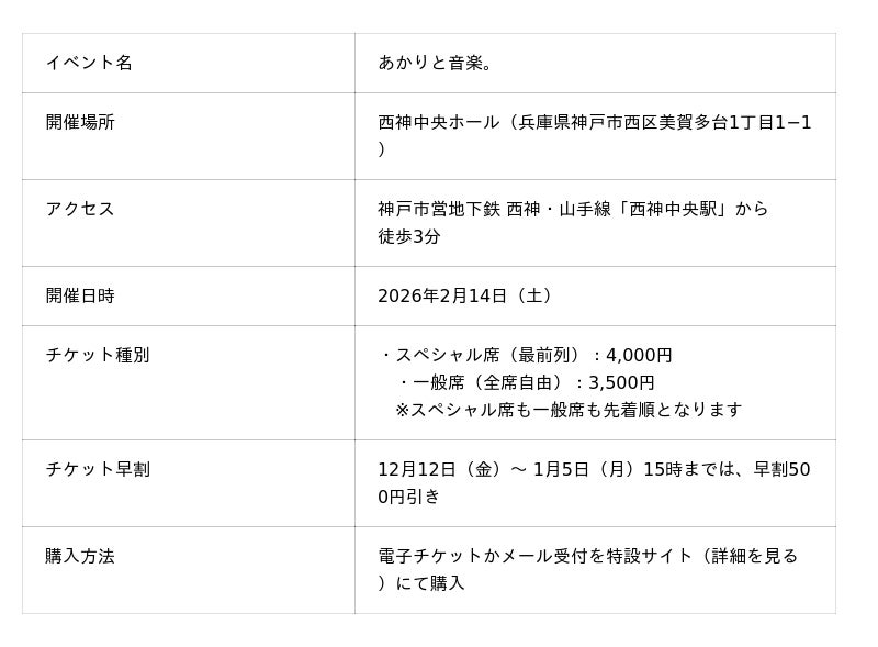 “あかりと音が紡ぐ癒しの時間”を、より多くの皆様にお届けします。チケットの詳細は、以下の内容をご覧ください。