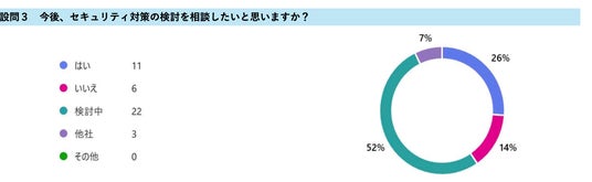 講演内容を踏まえたセキュリティ対策の検討相談意向では、参加者の97%が前向きな姿勢を示しました 。・検討中: 22件(55%)