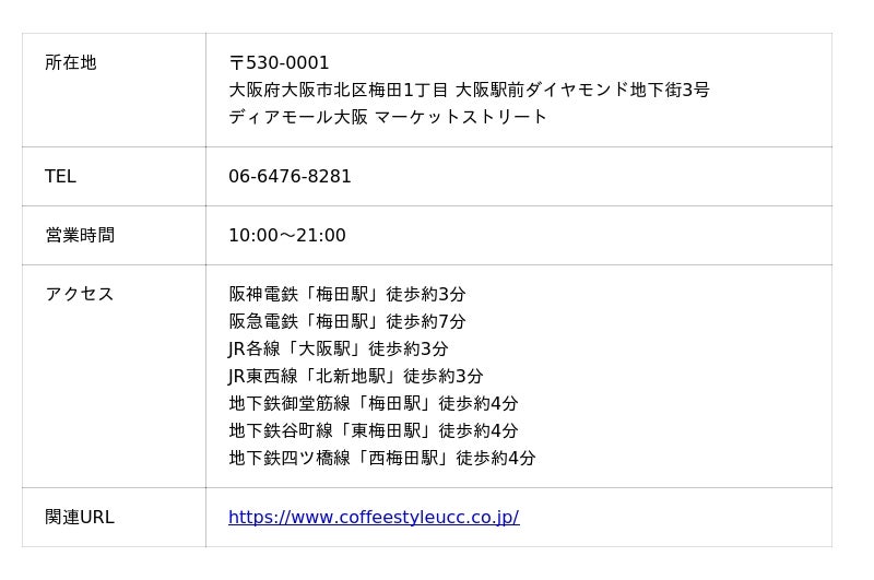 ■COFFEE STYLE UCC ディアモール大阪店 店舗概要