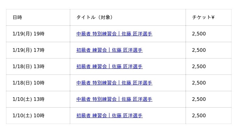 【リリース概要|佐藤 匠洋 選手による 初級・中級 練習会】