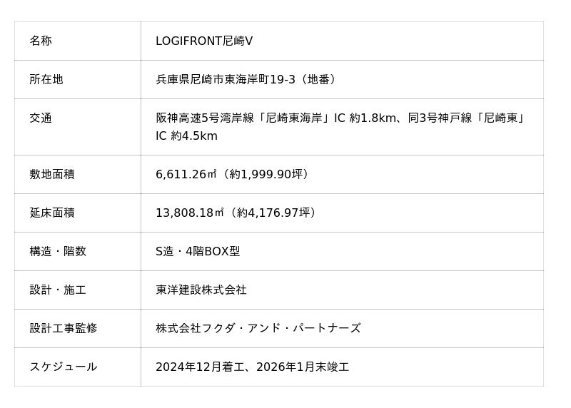 日鉄興和不動産株式会社(本社:東京都港区、代表取締役社長:三輪 正浩)は、兵庫県尼崎市にて開発を進めておりました当社の物流施設ブランド「LOGIFRONT(ロジフロント)」の近畿圏第6弾である「LOGIFRONT 尼崎V」(以下、「本施設」と言います)が2026年1月末に竣工したことをお知らせいたします。