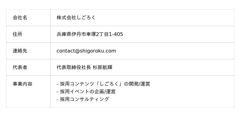 - メール:contact@shigoroku.com