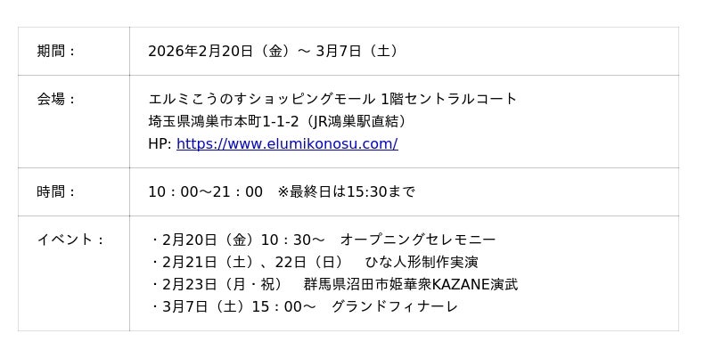 ■鴻巣市合併20周年記念「鴻巣びっくりひな祭り2026」概要