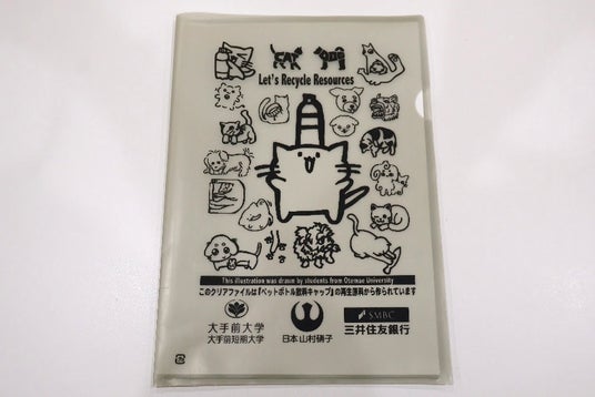 回収したペットボトルキャップは当社で再資源化され、大手前大学の学生によるデザインが施された1,000枚のクリアファイルとしてアップサイクルされました。