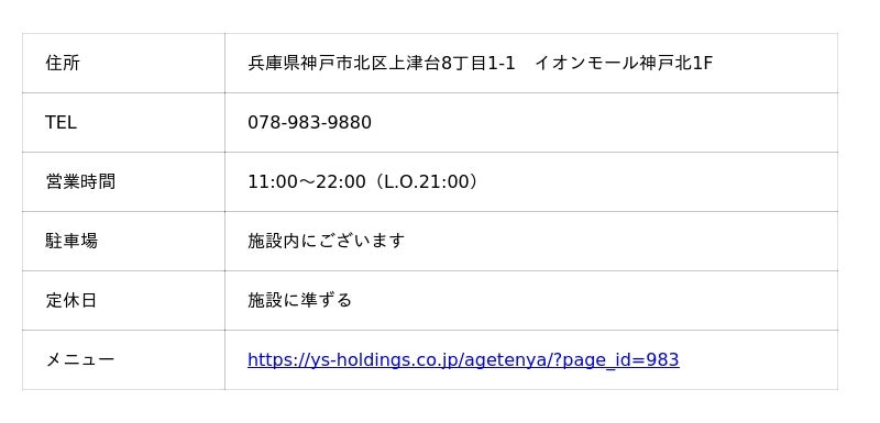 あげてんや 神戸イオンモール神戸北店