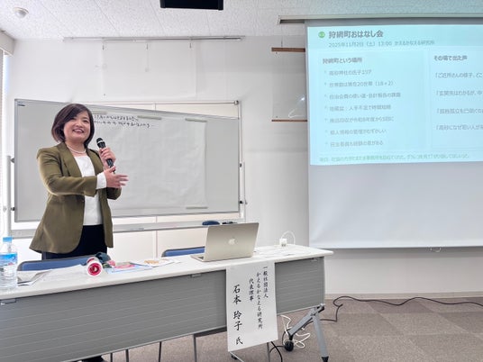 講演では、高齢化、一人暮らし、空き家、移動困難と孤立、自治会の担い手の高齢化といった現状に加え、孤独死の具体的な経験から、「近くにいること」と「つながっていること」は異なること、日常の小さなルーティンや関係性が命綱になり得ることが語られました。