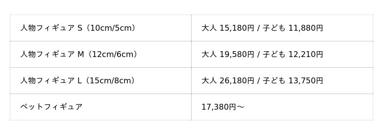 ※価格は税込。撮影・データ制作・フィギュア本体代を含みます。