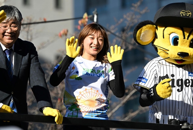 フィギュアスケート女子の前世界女王、坂本花織(シスメックス、神戸市灘区出身)が、神戸市役所前のスタート地点でスペシャルアンバサダーとして約2万人のランナーに声援を送った。