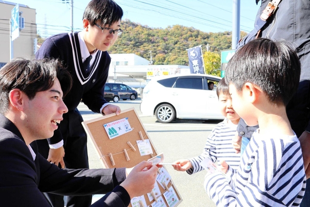 支え合いの輪を広げようと、東洋大学付属姫路高校(姫路市書写)の生徒がモスバーガー姫路辻井店(同市辻井3)で、企業や個人が先払いで購入した食事券を地域の子どもらに無料で配布する活動「お互いさまチケット」に取り組んだ。