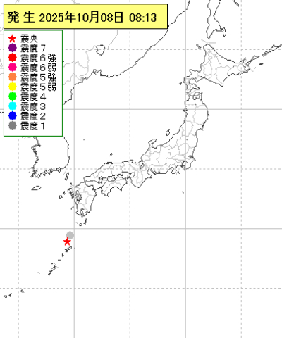 2025年10月08日08時13分ごろ地震がありました。