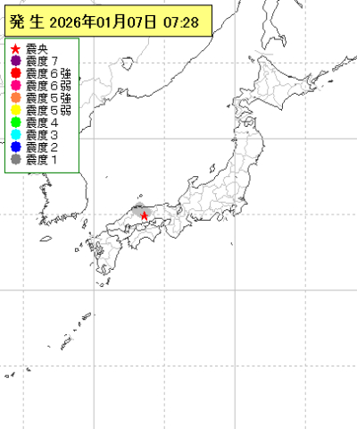 | 2026年01月07日07時11分ごろ | 島根県東部 | 2.8 | 1 |