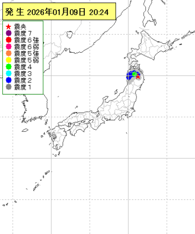 | 2026年01月09日20時08分ごろ | 千葉県北東部 | 4.7 | 4 |