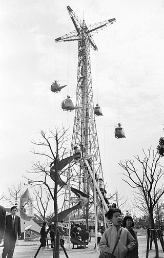 阪神パークの象徴だった高さ約60メートルの飛行塔(にしのみやデジタルアーカイブ提供)