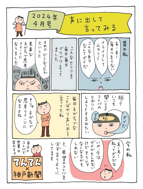 細川貂々さんのエッセー漫画 2024年4月号「声に出して言ってみる」 2024/5/23 22:40 印刷 生きるのヘタ会? 細川貂々さんのエッセー漫画 きょうの注目記事 神戸市長選、問われる人口減対策 「150万都市」25年後に推計人口2割減 10/23 05:30 社会 神戸市長選 選挙 小中学校再編統合「速やかに進める」 廃校舎解体せず費用圧縮 三田市財政ロードマップ案 10/23 05:30 三田 地方行政 子育て 教育 廃食用油を航空機燃料に 加古川市がノウハウ持つ企業と連携協定 市内に回収ボックス設置へ 10/23 05:30 東播 地方行政 三木の農に触れ課題や魅力学ぶ 甲南大生がフィールドワーク 山田錦の生産者から聞き取り 10/23 05:30 三木 斎藤知事の給与減額案、再び継続審議決定 知事答弁に議長が異例の苦言も 兵庫県議会 10/22 20:45 社会 再負託 斎藤県政 たつの市長選 立候補者2人の主張や横顔紹介 趣味や特技、素顔にも迫る 26日投開票 10/23 05:30 西播 選挙 佐用町長選 12年ぶりの選挙戦、候補者3人の主張や横顔を紹介 26日投開票 10/23 05:30 西播 選挙 新温泉町長選 立候補者4人の主張や横顔を紹介 26日投開票 10/23 05:30 但馬 選挙 ヴィッセル神戸、江原に敗戦でACLE初黒星 3-4で競り負け 1次リーグ 10/22 22:10 スポーツ ヴィッセル <ロッカールーム>小所帯、意地のタッチダウン 仁川高アメフト部・花木聡ヘッドコーチ 10/23 05:30 スポーツ 高校スポーツ 仁川学院高校 「前泊」は視察並みの詳報提出を義務化 政活費不適切支出で手引き改訂 県議会 10/22 19:30 社会 自民、N党議員と会派結成「経緯の説明を」 自民兵庫県議団、参院会長に意見書提出へ 10/22 20:03 社会 きょうの注目記事 神戸市長選、問われる人口減対策 「150万都市」25年後に推計人口2割減 10/23 05:30 社会 神戸市長選 選挙 小中学校再編統合「速やかに進める」 廃校舎解体せず費用圧縮 三田市財政ロードマップ案 10/23 05:30 三田 地方行政 子育て 教育 廃食用油を航空機燃料に 加古川市がノウハウ持つ企業と連携協定 市内に回収ボックス設置へ 10/23 05:30 東播 地方行政 三木の農に触れ課題や魅力学ぶ 甲南大生がフィールドワーク 山田錦の生産者から聞き取り 10/23 05:30 三木 斎藤知事の給与減額案、再び継続審議決定 知事答弁に議長が異例の苦言も 兵庫県議会 10/22 20:45 社会 再負託 斎藤県政 たつの市長選 立候補者2人の主張や横顔紹介 趣味や特技、素顔にも迫る 26日投開票 10/23 05:30 西播 選挙 佐用町長選 12年ぶりの選挙戦、候補者3人の主張や横顔を紹介 26日投開票 10/23 05:30 西播 選挙 新温泉町長選 立候補者4人の主張や横顔を紹介 26日投開票 10/23 05:30 但馬 選挙 ヴィッセル神戸、江原に敗戦でACLE初黒星 3-4で競り負け 1次リーグ 10/22 22:10 スポーツ ヴィッセル <ロッカールーム>小所帯、意地のタッチダウン 仁川高アメフト部・花木聡ヘッドコーチ 10/23 05:30 スポーツ 高校スポーツ 仁川学院高校 「前泊」は視察並みの詳報提出を義務化 政活費不適切支出で手引き改訂 県議会 10/22 19:30 社会 自民、N党議員と会派結成「経緯の説明を」 自民兵庫県議団、参院会長に意見書提出へ 10/22 20:03 社会 生きるのヘタ会?新着ニュース 生きるのヘタ会?新着ニュース