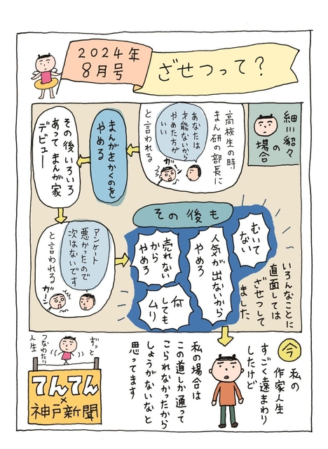 細川貂々さんのエッセー漫画 2024年8月号「ざせつって?」 2024/8/25 18:12 印刷 生きるのヘタ会? 細川貂々さんのエッセー漫画 きょうの注目記事 神戸市長選、問われる人口減対策 「150万都市」25年後に推計人口2割減 10/23 05:30 社会 神戸市長選 選挙 小中学校再編統合「速やかに進める」 廃校舎解体せず費用圧縮 三田市財政ロードマップ案 10/23 05:30 三田 地方行政 子育て 教育 廃食用油を航空機燃料に 加古川市がノウハウ持つ企業と連携協定 市内に回収ボックス設置へ 10/23 05:30 東播 地方行政 三木の農に触れ課題や魅力学ぶ 甲南大生がフィールドワーク 山田錦の生産者から聞き取り 10/23 05:30 三木 斎藤知事の給与減額案、再び継続審議決定 知事答弁に議長が異例の苦言も 兵庫県議会 10/22 20:45 社会 再負託 斎藤県政 たつの市長選 立候補者2人の主張や横顔紹介 趣味や特技、素顔にも迫る 26日投開票 10/23 05:30 西播 選挙 佐用町長選 12年ぶりの選挙戦、候補者3人の主張や横顔を紹介 26日投開票 10/23 05:30 西播 選挙 新温泉町長選 立候補者4人の主張や横顔を紹介 26日投開票 10/23 05:30 但馬 選挙 ヴィッセル神戸、江原に敗戦でACLE初黒星 3-4で競り負け 1次リーグ 10/22 22:10 スポーツ ヴィッセル <ロッカールーム>小所帯、意地のタッチダウン 仁川高アメフト部・花木聡ヘッドコーチ 10/23 05:30 スポーツ 高校スポーツ 仁川学院高校 「前泊」は視察並みの詳報提出を義務化 政活費不適切支出で手引き改訂 県議会 10/22 19:30 社会 自民、N党議員と会派結成「経緯の説明を」 自民兵庫県議団、参院会長に意見書提出へ 10/22 20:03 社会 きょうの注目記事 神戸市長選、問われる人口減対策 「150万都市」25年後に推計人口2割減 10/23 05:30 社会 神戸市長選 選挙 小中学校再編統合「速やかに進める」 廃校舎解体せず費用圧縮 三田市財政ロードマップ案 10/23 05:30 三田 地方行政 子育て 教育 廃食用油を航空機燃料に 加古川市がノウハウ持つ企業と連携協定 市内に回収ボックス設置へ 10/23 05:30 東播 地方行政 三木の農に触れ課題や魅力学ぶ 甲南大生がフィールドワーク 山田錦の生産者から聞き取り 10/23 05:30 三木 斎藤知事の給与減額案、再び継続審議決定 知事答弁に議長が異例の苦言も 兵庫県議会 10/22 20:45 社会 再負託 斎藤県政 たつの市長選 立候補者2人の主張や横顔紹介 趣味や特技、素顔にも迫る 26日投開票 10/23 05:30 西播 選挙 佐用町長選 12年ぶりの選挙戦、候補者3人の主張や横顔を紹介 26日投開票 10/23 05:30 西播 選挙 新温泉町長選 立候補者4人の主張や横顔を紹介 26日投開票 10/23 05:30 但馬 選挙 ヴィッセル神戸、江原に敗戦でACLE初黒星 3-4で競り負け 1次リーグ 10/22 22:10 スポーツ ヴィッセル <ロッカールーム>小所帯、意地のタッチダウン 仁川高アメフト部・花木聡ヘッドコーチ 10/23 05:30 スポーツ 高校スポーツ 仁川学院高校 「前泊」は視察並みの詳報提出を義務化 政活費不適切支出で手引き改訂 県議会 10/22 19:30 社会 自民、N党議員と会派結成「経緯の説明を」 自民兵庫県議団、参院会長に意見書提出へ 10/22 20:03 社会 生きるのヘタ会?新着ニュース 生きるのヘタ会?新着ニュース