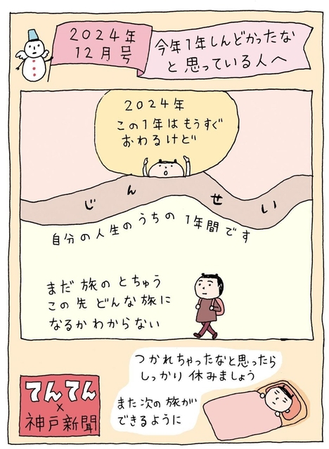 細川貂々さんのエッセー漫画 2024年12月号「今年1年しんどかったなと思っている人へ」 2024/12/27 15:44 印刷 生きるのヘタ会? 細川貂々さんのエッセー漫画 きょうの注目記事 神戸市長選、問われる人口減対策 「150万都市」25年後に推計人口2割減 10/23 05:30 社会 神戸市長選 選挙 小中学校再編統合「速やかに進める」 廃校舎解体せず費用圧縮 三田市財政ロードマップ案 10/23 05:30 三田 地方行政 子育て 教育 廃食用油を航空機燃料に 加古川市がノウハウ持つ企業と連携協定 市内に回収ボックス設置へ 10/23 05:30 東播 地方行政 三木の農に触れ課題や魅力学ぶ 甲南大生がフィールドワーク 山田錦の生産者から聞き取り 10/23 05:30 三木 斎藤知事の給与減額案、再び継続審議決定 知事答弁に議長が異例の苦言も 兵庫県議会 10/22 20:45 社会 再負託 斎藤県政 たつの市長選 立候補者2人の主張や横顔紹介 趣味や特技、素顔にも迫る 26日投開票 10/23 05:30 西播 選挙 佐用町長選 12年ぶりの選挙戦、候補者3人の主張や横顔を紹介 26日投開票 10/23 05:30 西播 選挙 新温泉町長選 立候補者4人の主張や横顔を紹介 26日投開票 10/23 05:30 但馬 選挙 ヴィッセル神戸、江原に敗戦でACLE初黒星 3-4で競り負け 1次リーグ 10/22 22:10 スポーツ ヴィッセル <ロッカールーム>小所帯、意地のタッチダウン 仁川高アメフト部・花木聡ヘッドコーチ 10/23 05:30 スポーツ 高校スポーツ 仁川学院高校 「前泊」は視察並みの詳報提出を義務化 政活費不適切支出で手引き改訂 県議会 10/22 19:30 社会 自民、N党議員と会派結成「経緯の説明を」 自民兵庫県議団、参院会長に意見書提出へ 10/22 20:03 社会 きょうの注目記事 神戸市長選、問われる人口減対策 「150万都市」25年後に推計人口2割減 10/23 05:30 社会 神戸市長選 選挙 小中学校再編統合「速やかに進める」 廃校舎解体せず費用圧縮 三田市財政ロードマップ案 10/23 05:30 三田 地方行政 子育て 教育 廃食用油を航空機燃料に 加古川市がノウハウ持つ企業と連携協定 市内に回収ボックス設置へ 10/23 05:30 東播 地方行政 三木の農に触れ課題や魅力学ぶ 甲南大生がフィールドワーク 山田錦の生産者から聞き取り 10/23 05:30 三木 斎藤知事の給与減額案、再び継続審議決定 知事答弁に議長が異例の苦言も 兵庫県議会 10/22 20:45 社会 再負託 斎藤県政 たつの市長選 立候補者2人の主張や横顔紹介 趣味や特技、素顔にも迫る 26日投開票 10/23 05:30 西播 選挙 佐用町長選 12年ぶりの選挙戦、候補者3人の主張や横顔を紹介 26日投開票 10/23 05:30 西播 選挙 新温泉町長選 立候補者4人の主張や横顔を紹介 26日投開票 10/23 05:30 但馬 選挙 ヴィッセル神戸、江原に敗戦でACLE初黒星 3-4で競り負け 1次リーグ 10/22 22:10 スポーツ ヴィッセル <ロッカールーム>小所帯、意地のタッチダウン 仁川高アメフト部・花木聡ヘッドコーチ 10/23 05:30 スポーツ 高校スポーツ 仁川学院高校 「前泊」は視察並みの詳報提出を義務化 政活費不適切支出で手引き改訂 県議会 10/22 19:30 社会 自民、N党議員と会派結成「経緯の説明を」 自民兵庫県議団、参院会長に意見書提出へ 10/22 20:03 社会 生きるのヘタ会?新着ニュース 生きるのヘタ会?新着ニュース