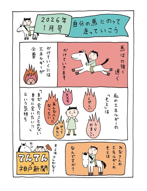 細川貂々さんのエッセー漫画 2026年1月号「自分の馬にのって走っていこう」 2026/1/25 20:30 印刷 生きるのヘタ会? 細川貂々さんのエッセー漫画 きょうの注目記事 兵庫県内公立学校の「先生の異動」検索サービスを公開 4/1 17:05 インフォメーション 教育 人事 海外赴任の過労問題、目を向けて 中国出向中の夫、孤立から自死 遺族女性が訴え、活動の輪広がる 4/1 17:45 社会 神戸市教委人事 正規新採用513人、1989年度以降で最多 女性管理職は22.1%に 4/1 17:00 神戸 人事 教育 ユーハイム、AIオーブン「テオ」のショールーム開設 導入検討者向けに内覧、研修も 神戸 4/1 17:43 経済 ユーハイム 黒井川沿いの桜「あと何回、見上げられるか」 河川の改修工事で消えゆく桜並木… 丹波・春日 4/1 17:22 社会 彩前線 丹波 仕事への思い、川柳に コンクール受賞者9人表彰 最優秀は「再雇用殻を破って生きてゆく」 4/1 18:17 社会 姫路 氷上高バレー部補助金不正受給 新たに228万7千円判明 顧問の男性教諭、5年間で 4/1 17:02 神鋼、東京本社移転は6月末 JR山手線高輪ゲートウェイ駅前の複合ビルに入居 4/1 17:16 ハーバーランドと元町結ぶデッキの延伸完了 南北移動が便利に 4/1 05:30 神戸 神戸市垂水区の「危ない交差点」 西舞子小近く 4/1 05:30 危ない交差点 社会 神戸 姫路レザー、クールに決める コシノミチコさんら新作発表 4/1 05:30 姫路 「明石T3テラス」オープン 明石港東外港地区のにぎわい創出へ 4/1 05:30 明石 開店閉店 きょうの注目記事 兵庫県内公立学校の「先生の異動」検索サービスを公開 4/1 17:05 インフォメーション 教育 人事 海外赴任の過労問題、目を向けて 中国出向中の夫、孤立から自死 遺族女性が訴え、活動の輪広がる 4/1 17:45 社会 神戸市教委人事 正規新採用513人、1989年度以降で最多 女性管理職は22.1%に 4/1 17:00 神戸 人事 教育 ユーハイム、AIオーブン「テオ」のショールーム開設 導入検討者向けに内覧、研修も 神戸 4/1 17:43 経済 ユーハイム 黒井川沿いの桜「あと何回、見上げられるか」 河川の改修工事で消えゆく桜並木… 丹波・春日 4/1 17:22 社会 彩前線 丹波 仕事への思い、川柳に コンクール受賞者9人表彰 最優秀は「再雇用殻を破って生きてゆく」 4/1 18:17 社会 姫路 氷上高バレー部補助金不正受給 新たに228万7千円判明 顧問の男性教諭、5年間で 4/1 17:02 神鋼、東京本社移転は6月末 JR山手線高輪ゲートウェイ駅前の複合ビルに入居 4/1 17:16 ハーバーランドと元町結ぶデッキの延伸完了 南北移動が便利に 4/1 05:30 神戸 神戸市垂水区の「危ない交差点」 西舞子小近く 4/1 05:30 危ない交差点 社会 神戸 姫路レザー、クールに決める コシノミチコさんら新作発表 4/1 05:30 姫路 「明石T3テラス」オープン 明石港東外港地区のにぎわい創出へ 4/1 05:30 明石 開店閉店 生きるのヘタ会?新着ニュース 生きるのヘタ会?新着ニュース