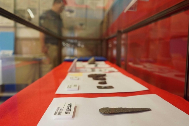 三田市内で見つかった縄文時代の土器や石器を集めた展示「三田の縄文時代」が、三田ふるさと学習館(屋敷町)で開かれている。矢の先端に付ける石鏃(せきぞく)や、子どものひつぎとして使われた土器の深鉢など約50点が並ぶ。(谷川直生)