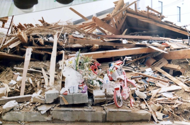 • 震災で全壊した羽中健二さんの自宅(羽中さん提供)
