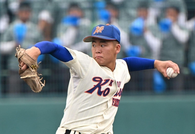 神戸国際大付ー金光大阪 7回途中にリリーフし、好投した神戸国際大付の宮田=奈良県橿原市のさとやくスタジアム(撮影・大田将之)