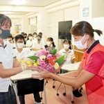 交通安全を呼び掛ける動画に出演するなど啓発活動に協力したとして、いずれも東京五輪に出場した体操の杉原愛子さん(22)=武庫川女子大短大部2年=と飛び込みの荒井祭里さん(21)=武庫川女子大3年=が22日、兵庫県警の矢野浩司交通部長から感謝状を受けた。