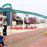 六甲ライナーマリンパーク駅前のレジャープール「デカパトス」(神戸市東灘区向洋町中8)が9日、今季の営業を始めた。高低差10~14メートルの2種類のウオータースライダー、全長220メートルの流水プール、数分おきに波が打ち寄せる造波プールなどが盛況で、青空に歓声が響き渡った。