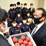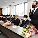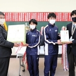 25日に行われた全国高校駅伝大会(京都市)に男女そろって出場した西脇工高陸上部が27日、兵庫県西脇市役所(同市下戸田)を訪問し、片山象三市長や市職員に結果を報告した。市からは男女の監督と主将に花束が贈られ、片山市長が「大舞台で素晴らしいたすきリレーだった」と選手をねぎらった。男子の足立幸永監督は「市や市民のおかげで、最高の準備をして大会に臨めた」と感謝を述べた。