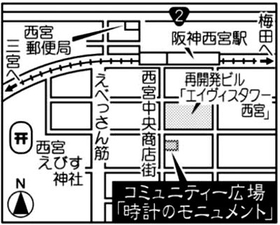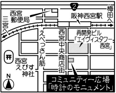 大時計は、買い物客らが一休みする、花や木に囲まれた広場にある。直径約一メートル、約三十キロ。一九七八年ごろ、近くの時計店主によって贈られ、商店街の繁栄と震災後の苦悩を見続けてきた。「今後は私たちの復興を見届けて」。商店主たちは再生への思いを託す。