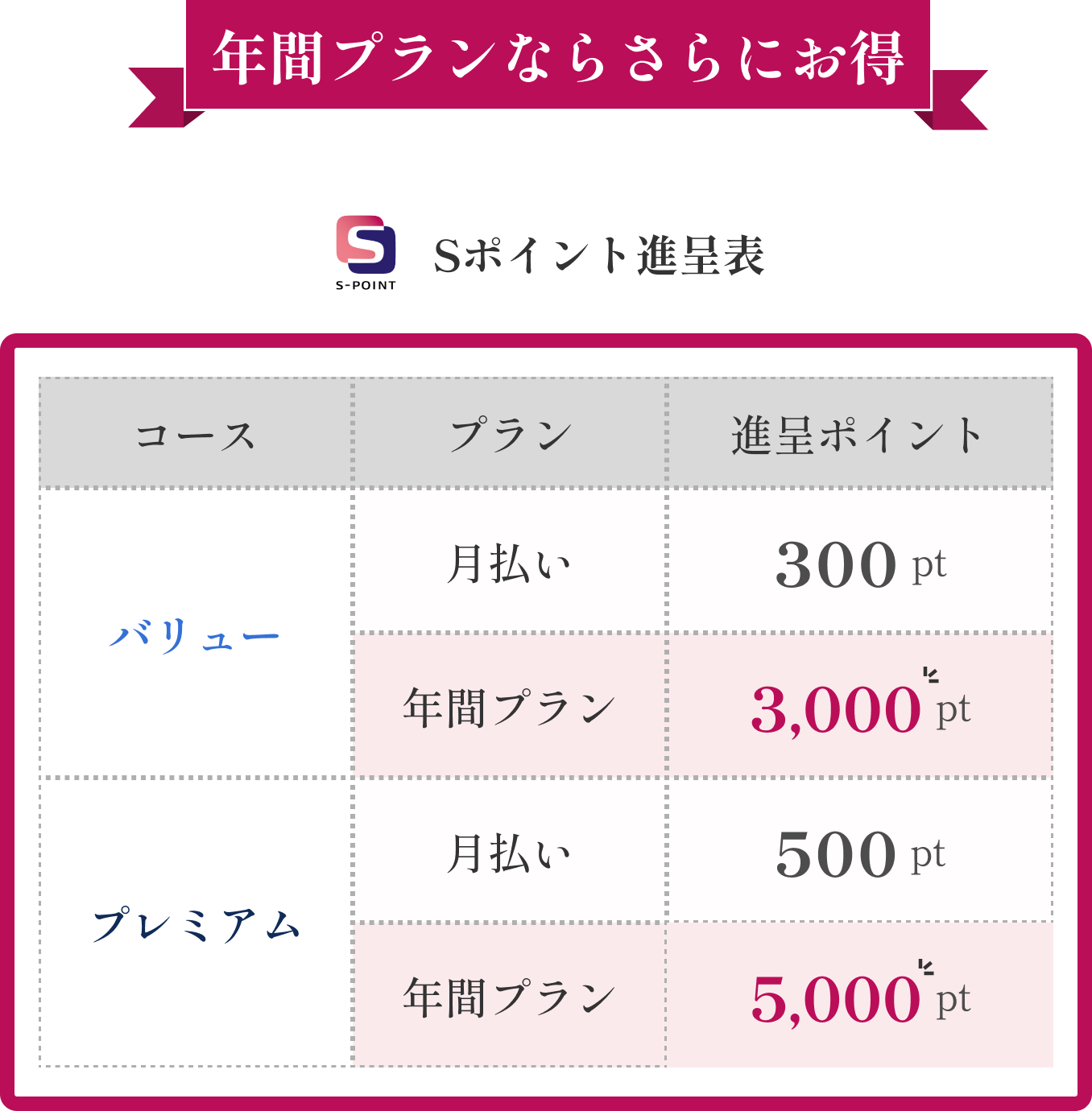 ※ポイント進呈は1回のみです。例えば、12月28日にバリュー(月)にお申込みいただき、2月29日時点で2度自動更新していただいても、進呈ポイントは300ポイントです。