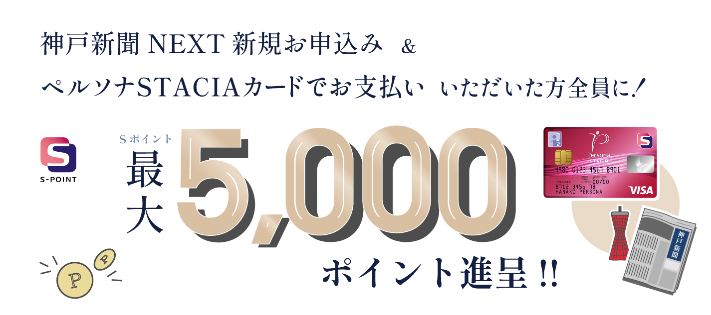 ※2月29日23:59までにペルソナSTACIAカードで神戸新聞NEXTの決済が完了していることがキャンペーン参加条件となります。