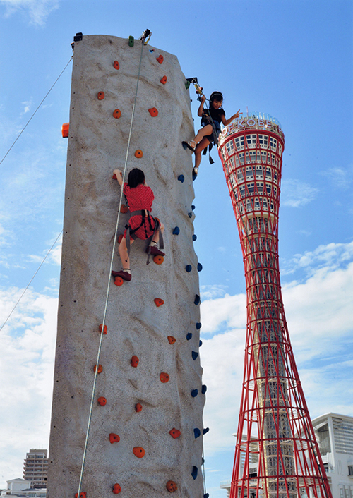 神戸ポートタワーとの対比で高さをうまく出しました。子どもの明るい表情もいいですね。(ニコンD600 24~120ミリ 絞りf22 500分の1秒)