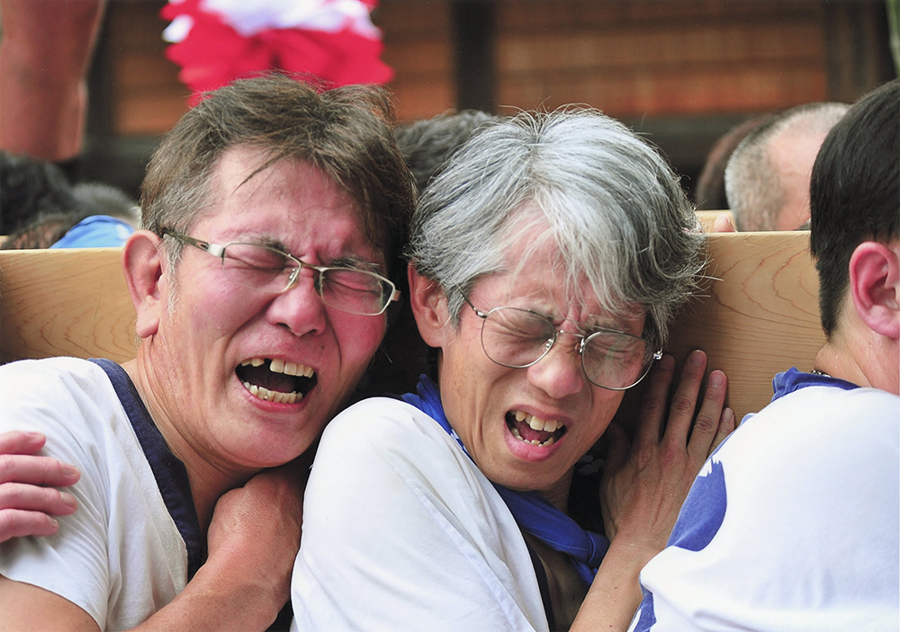 屋台の下で力を振り絞る人の表情を見事にとらえました。眉間にしわが寄って口も大きく開いていて、声まで聞こえてきそうです。(ニコンD3s 80ミリ 絞りf4.5 500分の1秒)