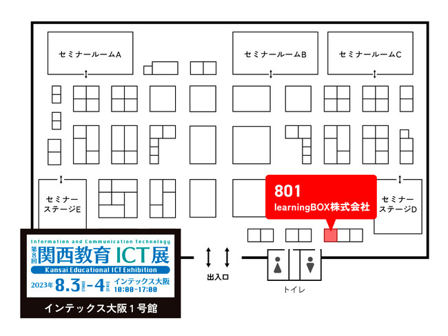 eラーニングシステムの開発・運営を行うlearningBOX(ラーニングボックス)株式会社(本社:兵庫県たつの市、代表取締役社長:西村 洋一郎)は、2023年8月3日(木)・4日(金)にインテックス大阪で開催される「第8回 関西教育ICT展」に出展いたします。教育市場を活性化する西日本最大級の教育ICT展示会でeラーニングシステム「learningBOX」についてご紹介させていただきます。