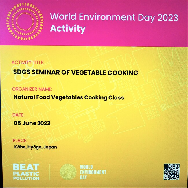 昨年「ナチュラルフードクッキング教室としての取り組み」を国連に報告させて頂き、登録完了のメールも頂きました。今年もメールをくださいました。