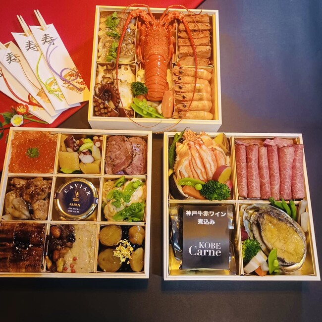 こちら兵庫県産の食材にプラス世界からの高級食材を合わせハンガリー産フォアグラにプレミアムキャビアをたっぷり50g【兵庫県特産品お節料理】は元日の食卓を彩ること間違えなし!