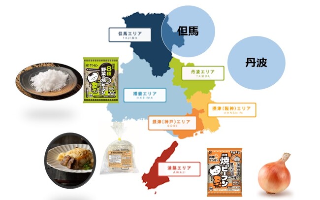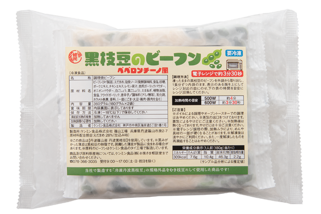 ●弊社は、地産地消・地域活性化に貢献すべく、これまで「神戸牛焼ビーフン」(摂津)、赤穂の天塩(播磨)を使用した「8種野菜の焼ビーフン」、淡路の玉葱(淡路)を使った「兵庫ケンミン焼ビーフン」といった兵庫五国の食材を生かした冷凍ビーフンを開発しています。今回、丹波エリアの特産品である丹波黒枝豆を使用し、「黒枝豆のビーフン ペペロンチーノ風」を販売します。