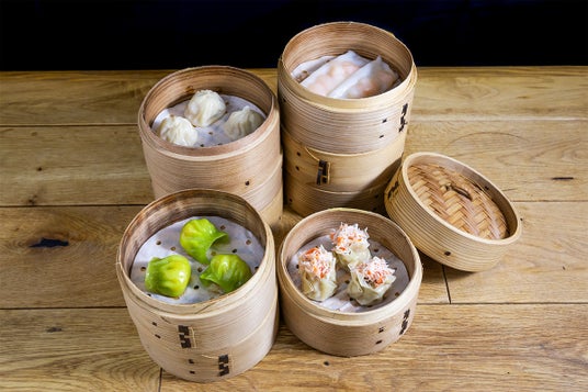 ・5冠王!点心タワー(香住カニ焼売、神戸ポークの小龍包、神戸ポークの焼売、翡翠蝦餃子、海老の腸粉)