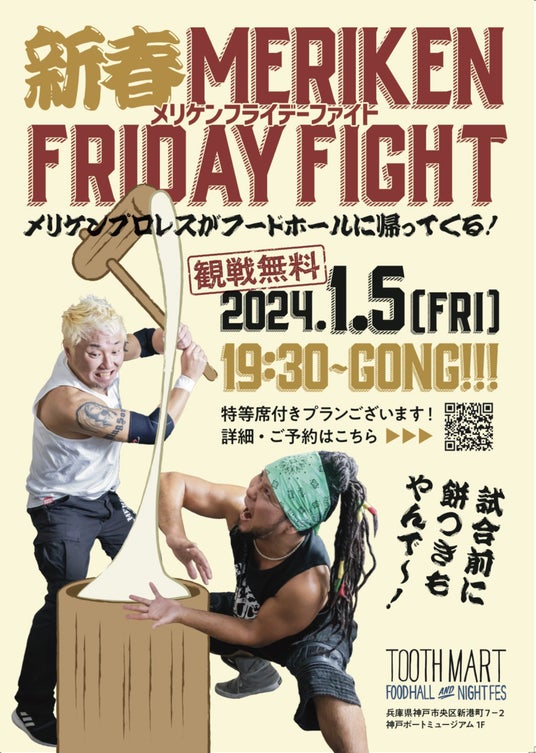 【神戸最大級のフードホール】神戸ポートミュージアム1階にある「TOOTH TOOTH MART FOOD HALL&NIGHT FES」にて、2024年1月5日(金)新春プロレスを開催いたします!