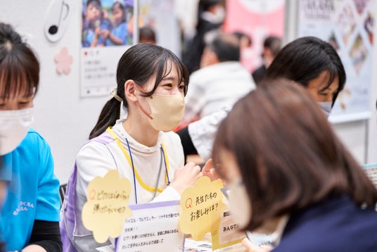 出展法人様には当社より、できる限りブースには若手キャリアの先生に配置いただくように依頼。学生との年齢が近く、学生の悩みや本当に聞きたいことをよくご存じだからです。話しやすい先生方とコミュニケーションをとり、より深く現場のことを理解し、働きがいを感じられる進路選びをしてもらいたいと考えています。