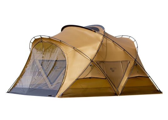ミニマルワークスの代表的アイテム「SHELTER G」は、ダブルクロスポール構造を採用した自立型シェルターで、設置が非常に簡単でありながら、ポールの構造もスタイリッシュな人気シェルターテント。