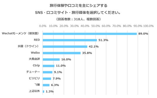 ・旅行体験や口コミのシェア先は「WeChatモーメンツ」、「RED」などのSNSが主流