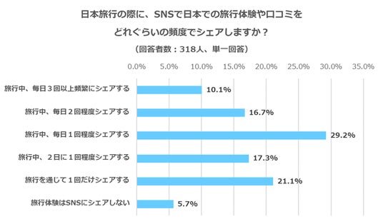 日本旅行の際に、SNSで日本での旅行体験や口コミをどれぐらいの頻度でシェアしますか?