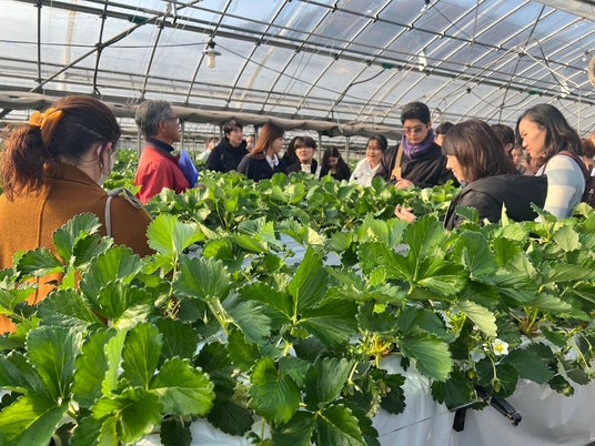 2023年11月あまクイーンを栽培している篠田いちご園にてプロジェクトメンバーと