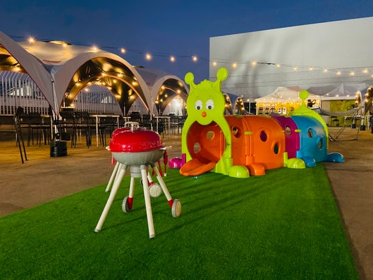 日差しや雨よけのテントを設置した全天候型BBQエリア