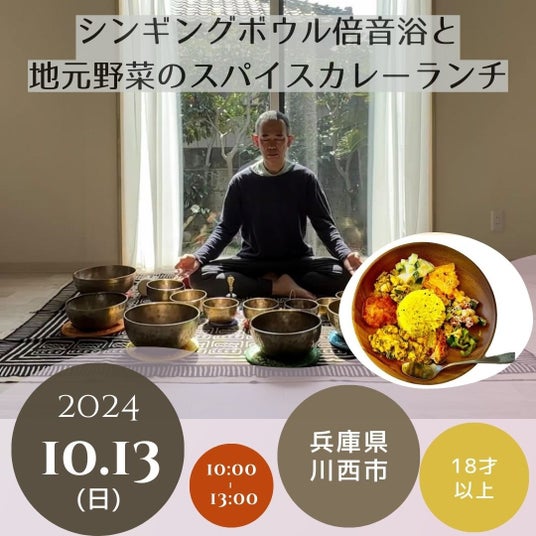 (第一部) ヨガ (第二部) シンギングボウル (第三部) 昼食 スパイスカレー