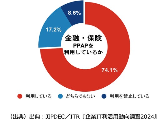 また、「PPAP問題」も課題の1つであり、日本政府を初め淘汰の流れがありますが、金融機関では依然として存在しています。現在も約7割の金融機関がPPAPを運用しており、セキュリティリスクが高い状態にあります。