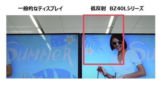 ・低反射モデル(BZ40Lシリーズ)では47%(FW-85BZ40Lは58%)という高いヘイズ値*で映り込みを大幅に抑えながら、窓のある教室や蛍光灯などの照明が多い明るい教室でも鮮明に映像を表示可能